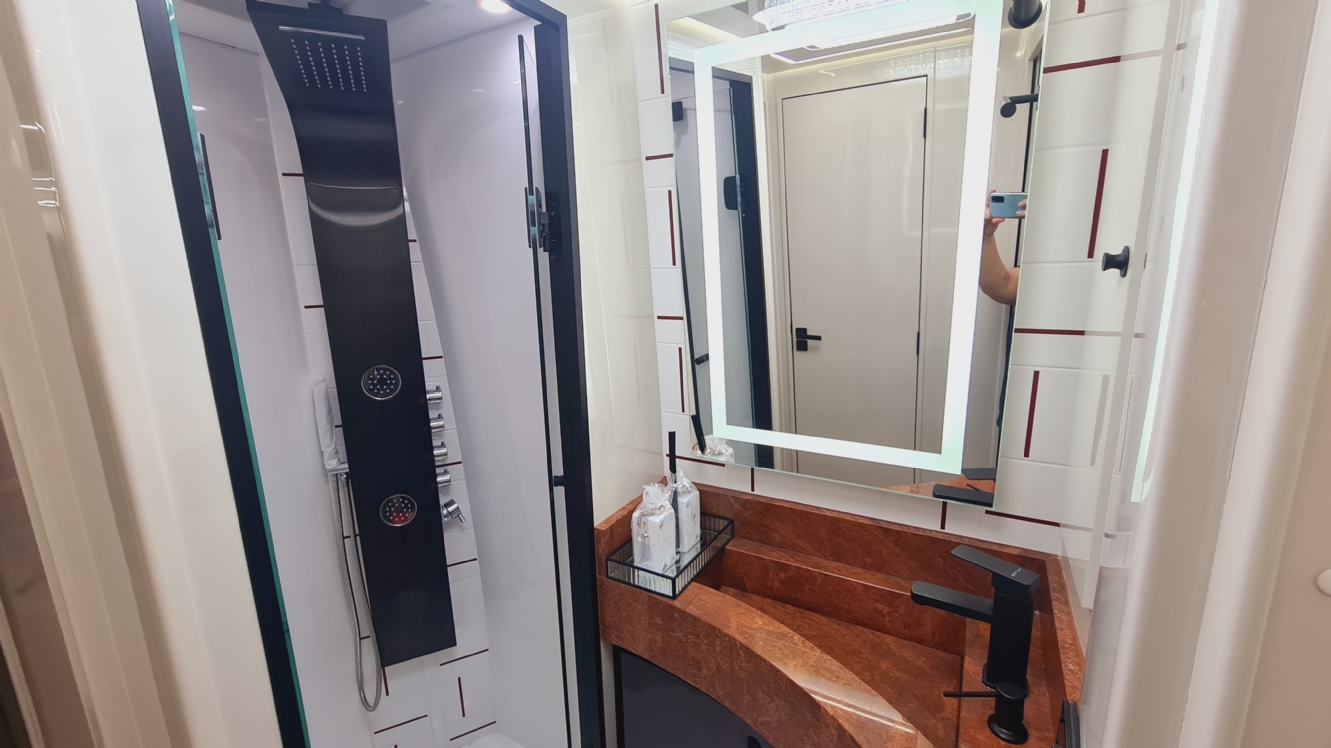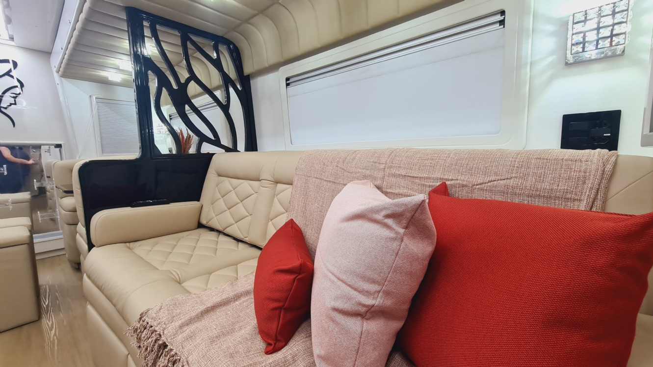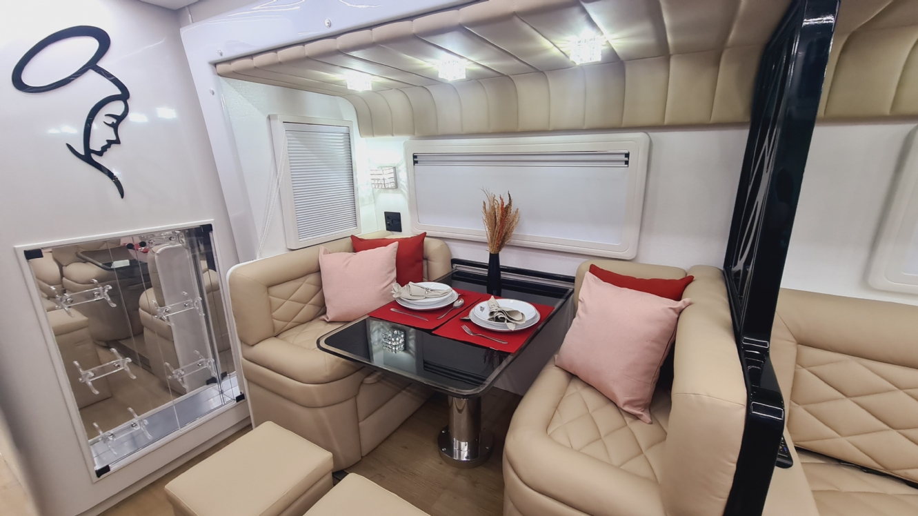 Projeto personalizado elaborado e confeccionado sobre chassi Volkswagen, modelo 9.160, em torno de 9,70 metros de comprimento, com acomodações para até 06 pessoas.